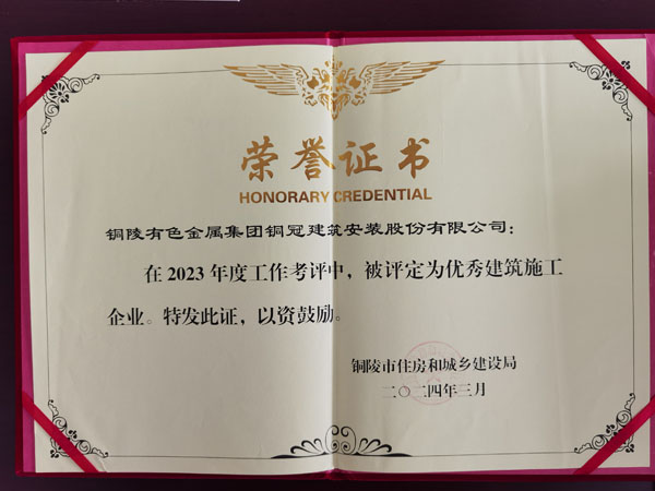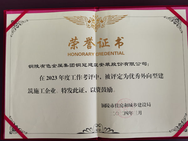 • 銅陵市優秀外向型建筑施工企業(2023年...